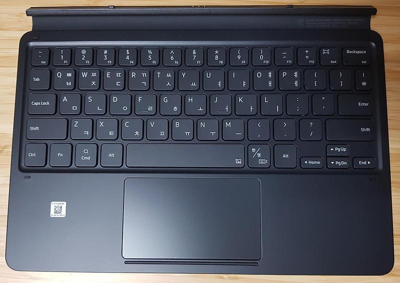또한 갤럭시 탭 s7+는 화면 자체가 12.4인치로 매우 크다는 점을 십분 활용하여, 전작과 갤럭시 탭 s7의 키보드 커버에 비하여 키보드 배열을 1줄 더 늘림으로써, 키보드의 맨 윗줄에 f1~f12까지의 기능키들을 배치하면서 13인치짜리 노트북 키보드와 유사한 배열을.